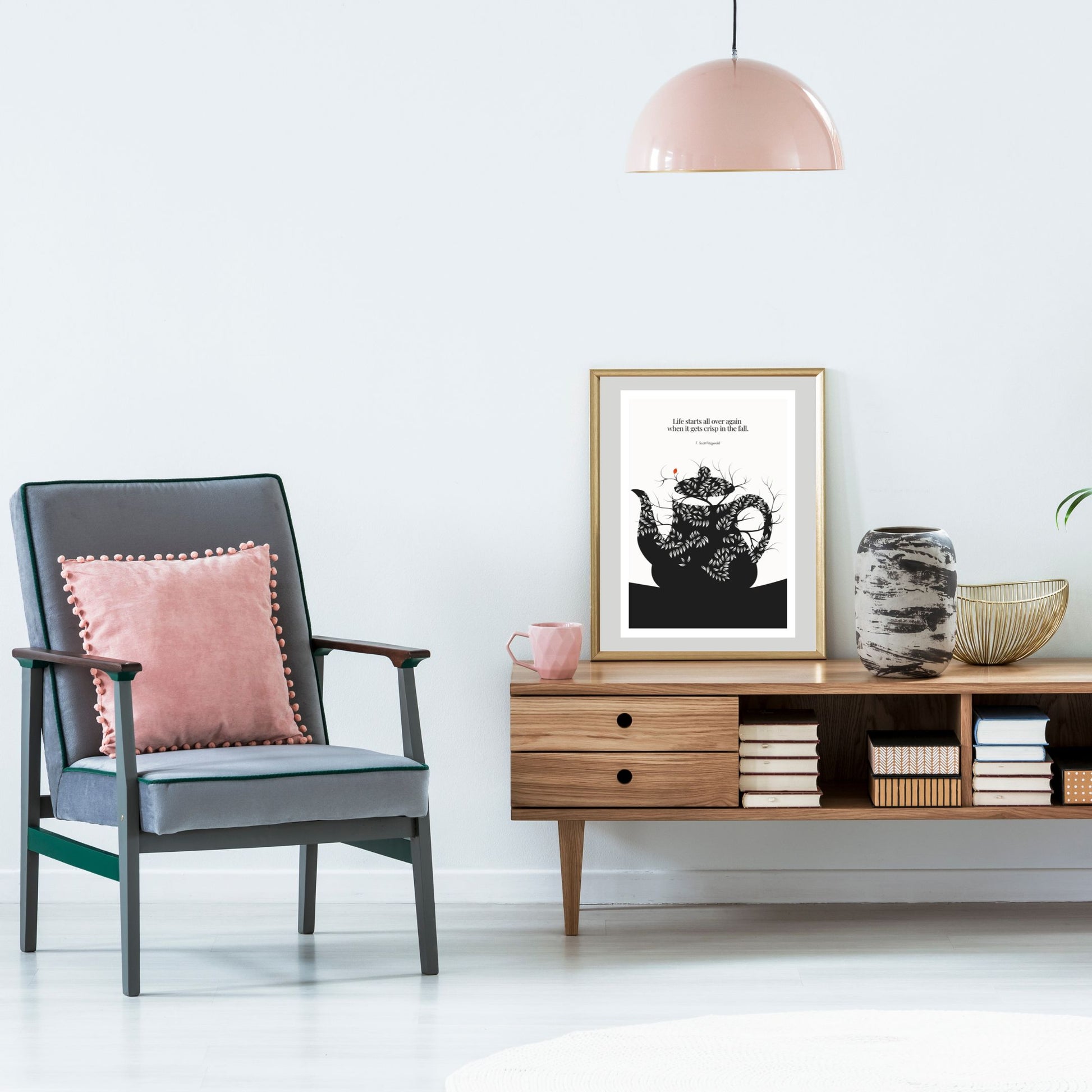 Transform your space with the timeless wisdom of F. Scott Fitzgerald. This stunning quote print, featuring the evocative phrase 'Life starts all over again,' serves as a daily reminder of renewal and hope.
